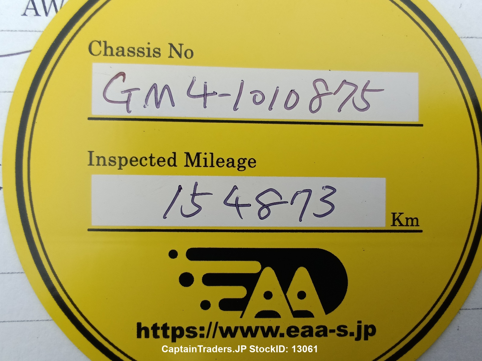 Chassis No. GM4-1010875 Drive 2 Wheel Drive