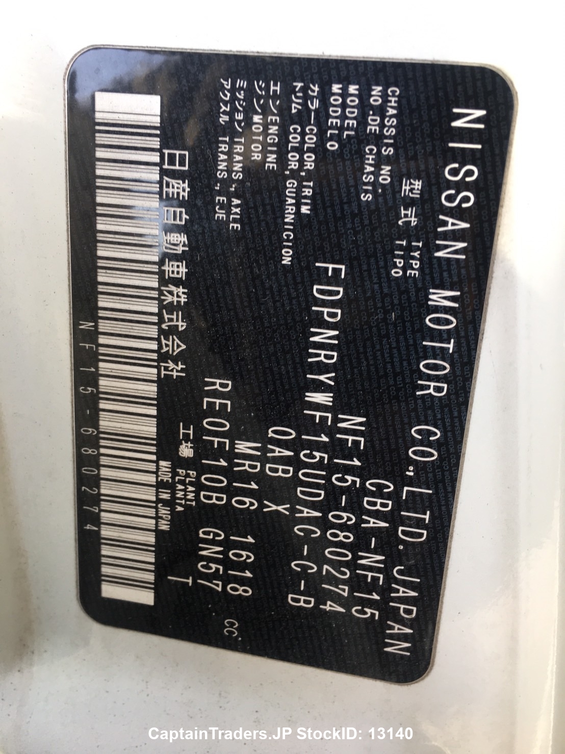 Chassis No. NF15-680274 Drive 4 Wheel Drive