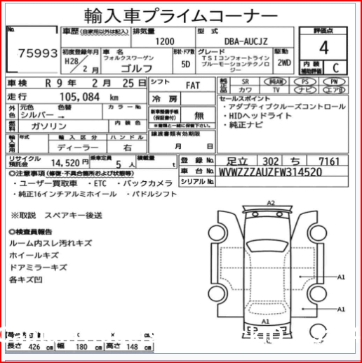 | Chassis No. | WVWZZZAUZFW314520 | Drive | 2 Wheel Drive |