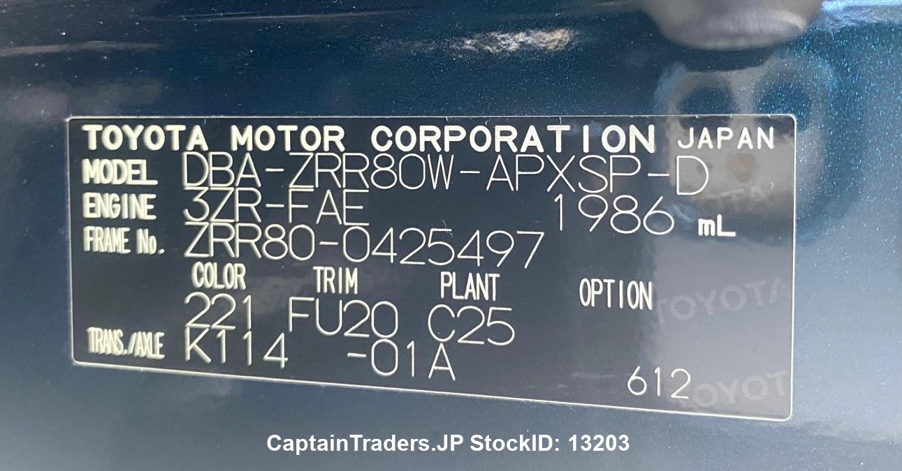 Model Code DBA-ZRR80W Ext. Color Black