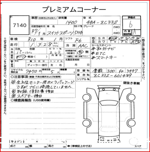 | Chassis No. | ZC33S-601489 | Drive | N/A |