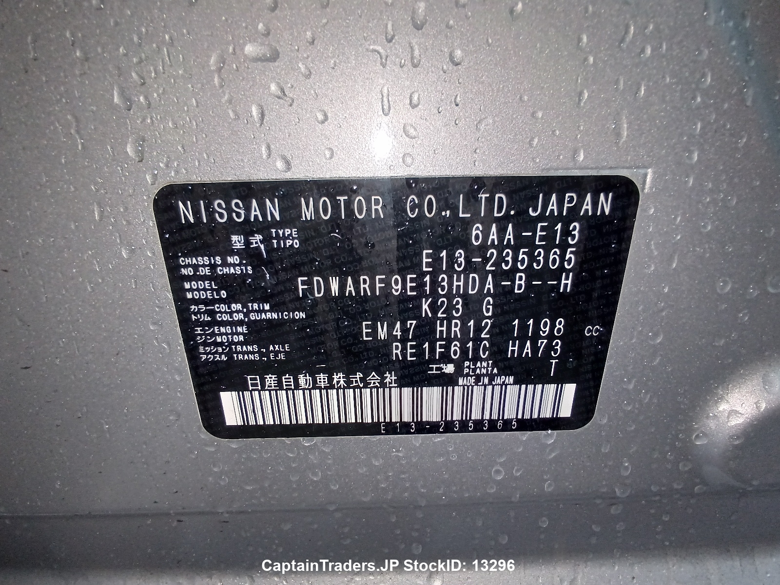 | Chassis No. | E13-235365 | Drive | N/A |